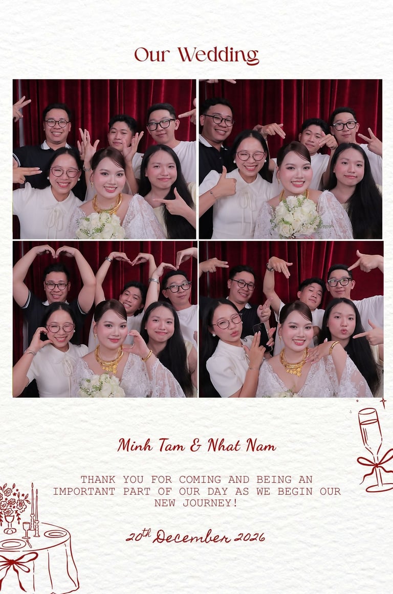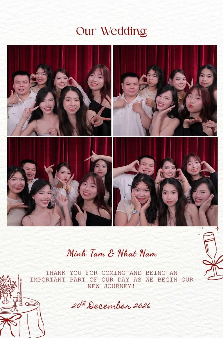 Một điểm cộng lớn của dịch vụ photobooth là ảnh được in ngay tại chỗ. Khách mời có thể mang ảnh về nhà, dán album hoặc lưu giữ như một kỷ niệm đặc biệt của sự kiện.